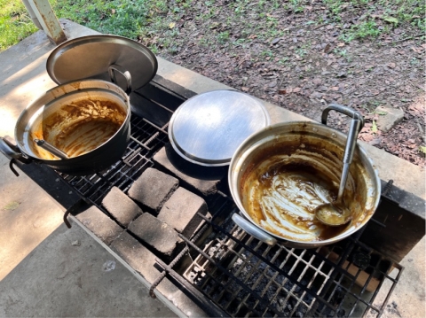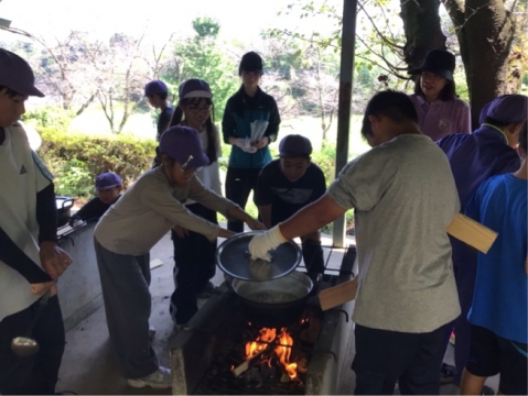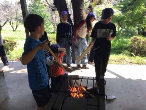 みんなで協力して火の調節をしたり、具材を切ったりしました。