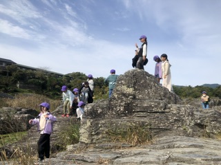 また、岩畳を見学し、地層の不思議さも感じていたようです。