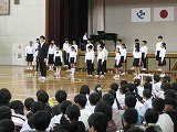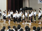 本日の音楽朝会は、10月21日に行われる市内小学校音楽会に出場するクラスの発表を聴きました。練習を積んできた4年1組の児童は、自信をもってきれいな歌声を披露してくれました。聴いている全校児童の心も豊かに、素敵な時間となりました。