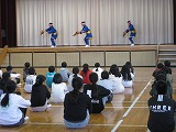 総合的な学習の時間「日本の文化に触れよう ~日本から世界へ~」の学習で、日本芸能協会若竹舞踊団にお越しいただき、民舞体験を行いました。民謡の歴史について学んだり「郡上春駒」を一緒に踊ったりして、日本文化のよさを感じる時間となりました。