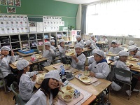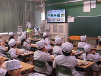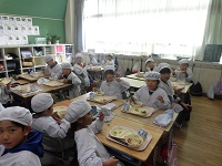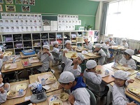 給食の様子です。2年生は自分たちで収穫したさつまいもを