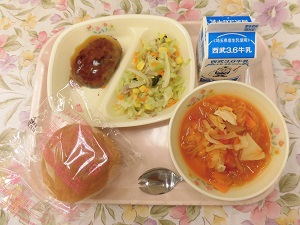 今日の給食のハンバーガーに使用したハンバーグは