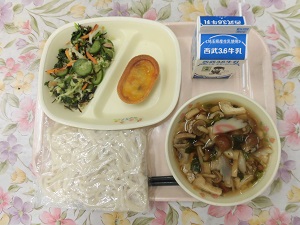 今日の給食は、しめじ・干し椎茸・なめこや