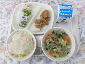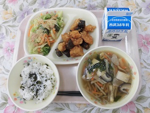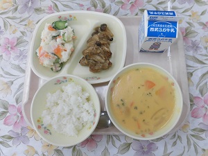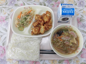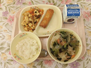 給食では、生姜 ・豚肉・にんじん・たけのこ・