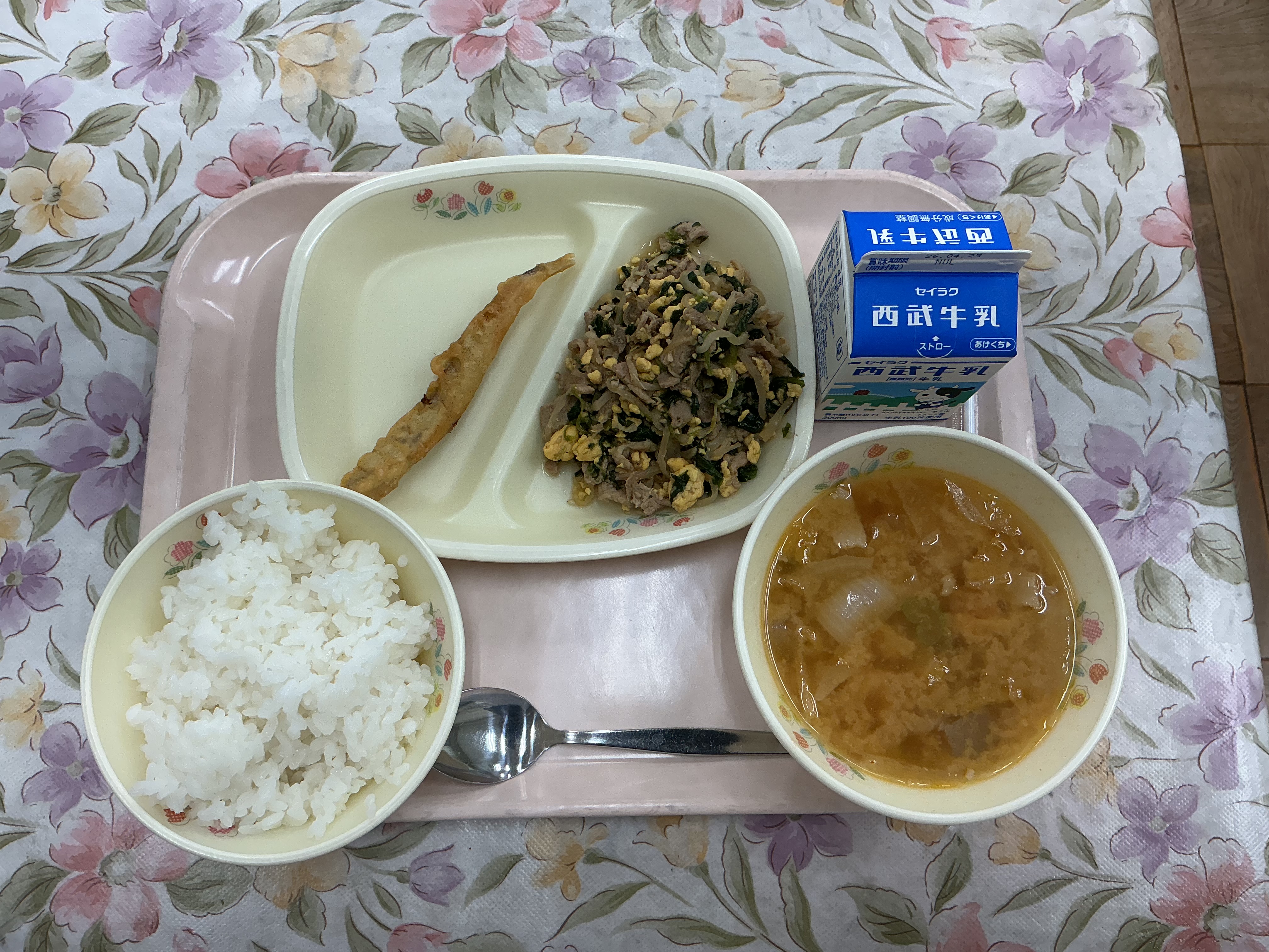 ご飯・ビビンバ・ししゃもフリッター・キム豚汁・牛乳です。