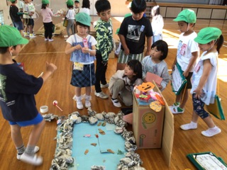 今日は、月曜日のおもちゃやさんに1年生を招待するために
