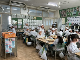 今日の給食は、おにぎりを自分で作って食べました。