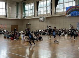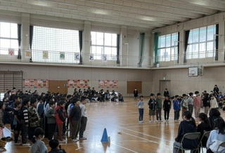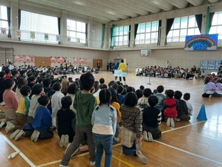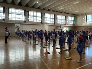 全校朝会は、基本的に体育館で集まって行うことが多いですが、