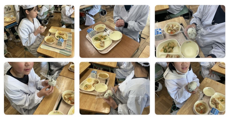 また、給食は自分でおにぎりを作りました。震災当時、各地で炊き出しが行われ、その際「おにぎり」を食べやすい大きさにして提供したところが多かったそうです。おにぎり一つに多くの人々の命も心も救われたことを知りました。