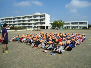 学年集会・・・4年生になって初めての学年集会を行いました。楽しく「ジャンケン列車」をしました。