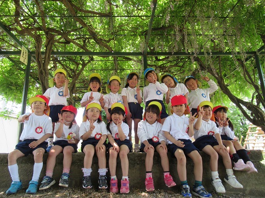 藤沢小学校・幼稚園のシンボルでもある、藤の花の下で、みんなで写真を撮りました!