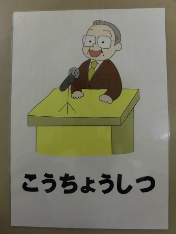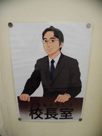 校長室のとびらの横には、案内用の表示がありましたが、ひとつ問題が・・・・・。 あまりにも印象が違うという意見が多かったので、改めて案内表示を描いてもらいました!