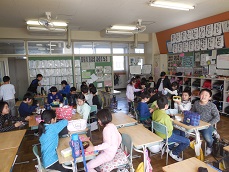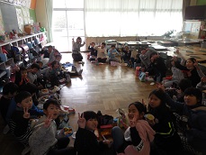 お昼は、保護者の方々につくっていただいたお弁当をおいしく