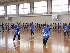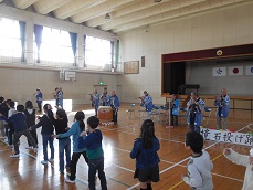 を体験しました。運動会では踊っていますが、踊りの歴史などを詳し