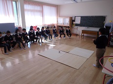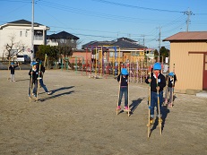まず、竹馬です。親子で作った竹馬を冬休み中に練習してきたせいか、特にふじ組のたくさんのお友達が乗れるようになっています。
