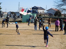 次は、凧揚げです。自分がスピードを上げて走ると、凧もよく揚がります。
