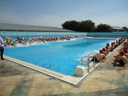 月曜日にはクロールと平泳ぎの今の泳力を調べました。今日は1時間なので、流れるプールやけのびの練習。ワイワイキャーキャー言いながらも、楽しく入っています。