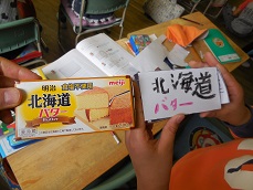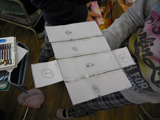 子ども達は、家から持ってきた箱を紙に写し、切り取って展開図を作り