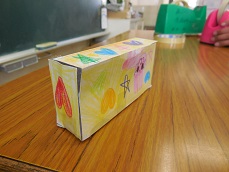 教科書に載っている展開図例以外のやり方で箱づくりに挑戦した児童もいました。