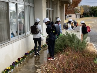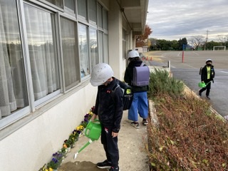 今日が朝の水やり初日でしたが、教師から声がかかる前に自分たちであげていました。