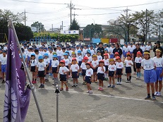 開会式では、いつものように並び方がとても上手な園児は、「はいっ!」というお返事もとっても上手で、小学生の見本となっていました。