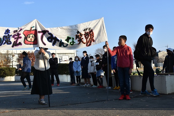 〇続々と登校。挨拶の声が響きます。 〇横断幕登場!