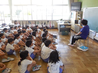 3年生はとても集中して聞き入っていて、写真を撮りながら子どもた