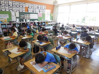 今日は、3クラスとも漢字の50問テストを実施しました。