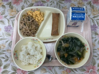 給食では卵を炒り卵にしました。