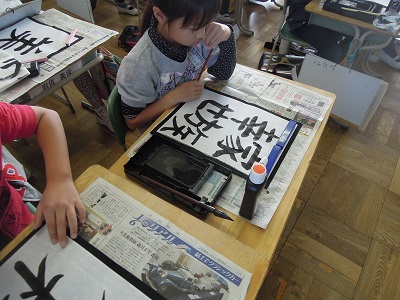 自分の決めた文字を半紙に書きました。