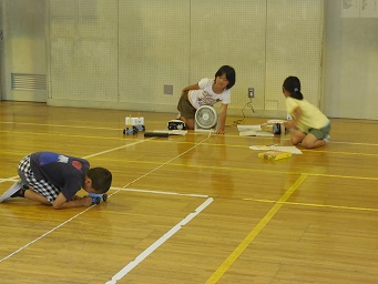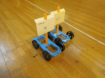風が強い方が車が遠くまで走ると予想する児童もいれば、弱い方が遠く