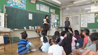 今日は、「深谷お話の会」の方々が来校し、2年生のすべてのクラスで