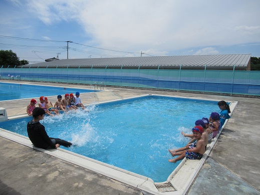 プール開きをしてから、はじめてのプールです。小学校の低学年用のプールに入ります。
