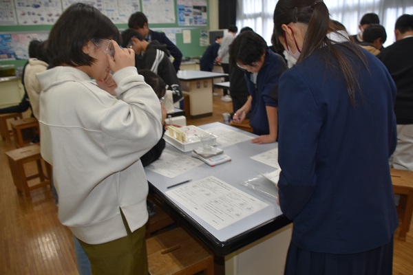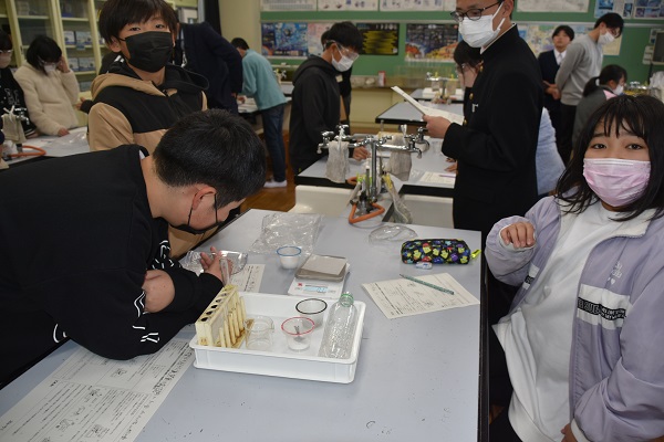 〇理科室では実験、観察。なんかシュワシュワ泡が出てる!重さが微妙に減ってる!とのことでした。