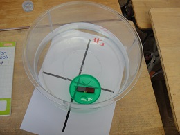 まずは方位を確認。方位磁針の文字盤と針を合わせて、