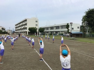 体操を熱心に行い、時間走やダッシュも全力で取り組む人が多く、6年生らしい態度でした。