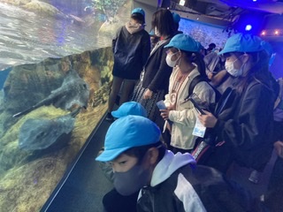 江ノ島水族館に着くと、クラスごとに写真を撮影して、