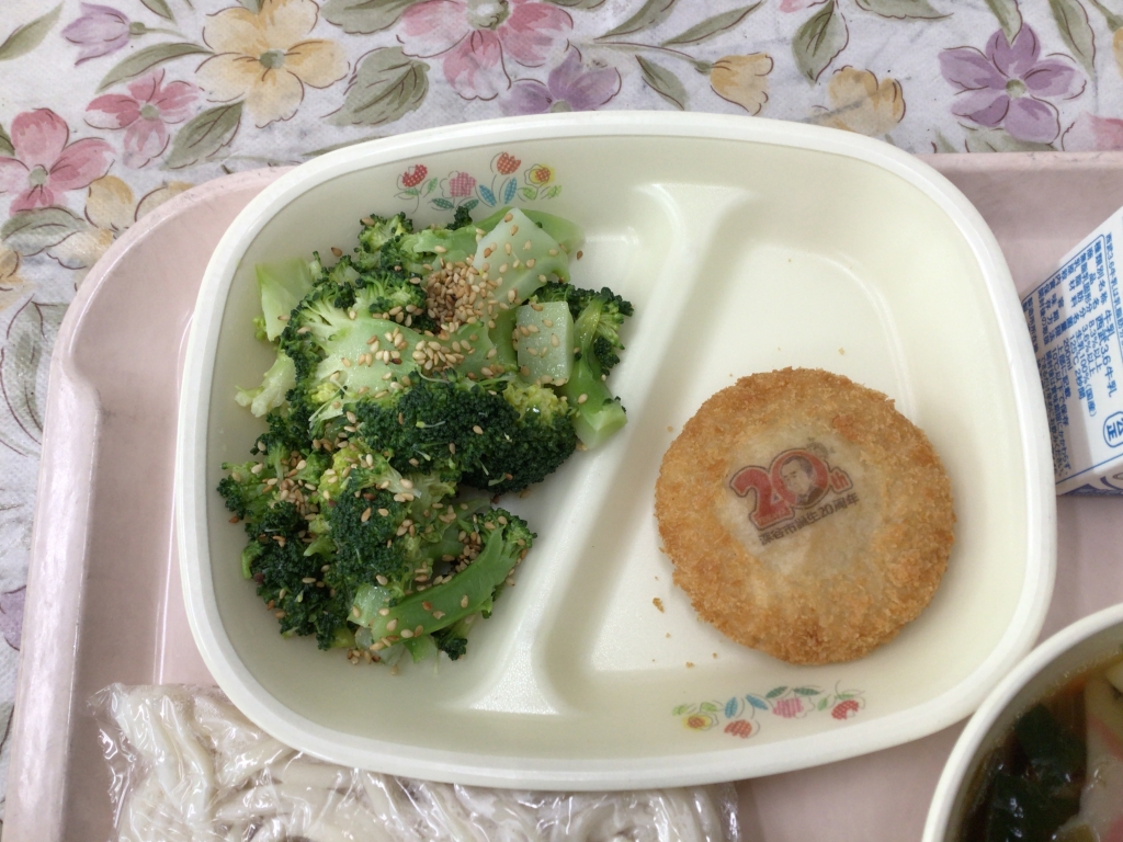 今日の給食の深谷市誕生20周年記念コロッケは、