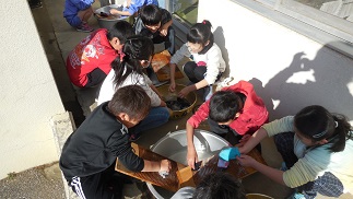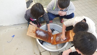 全ての学級で、「洗濯板を使った選択体験」を実施しました。
