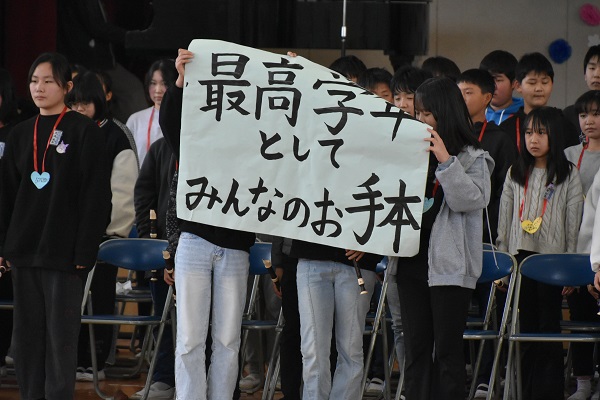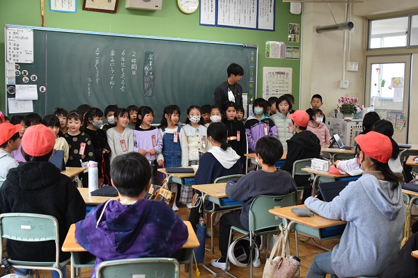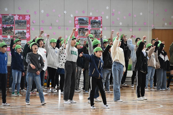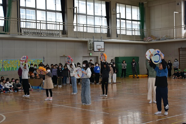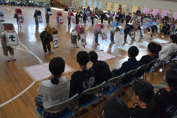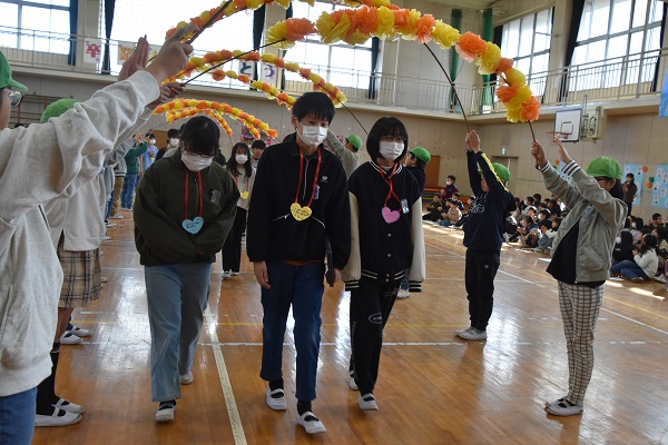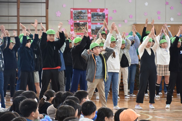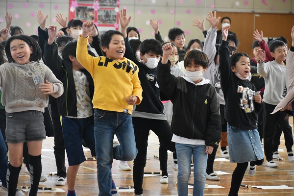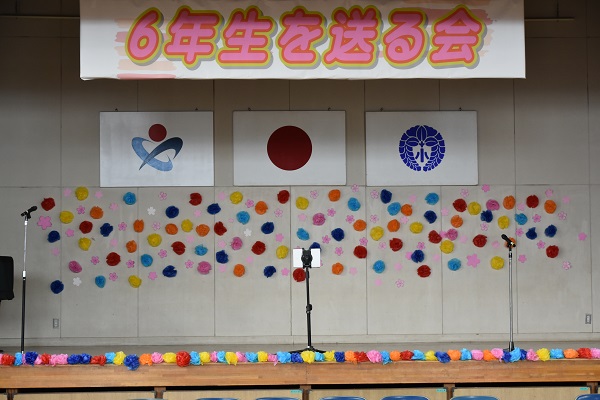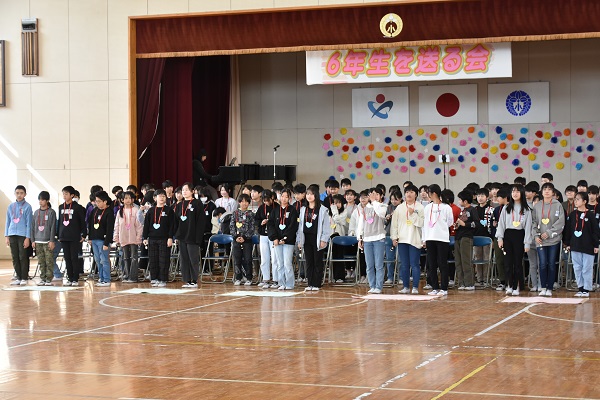 今日は6年生を送る会がありました。4年ぶりに体育館で全学年が集合しての会となりました。各学年から6年生に「ありがとう」の気持ちをつたえることができました。6年生からもメッセージをもらい、心あたたまる会となりました。