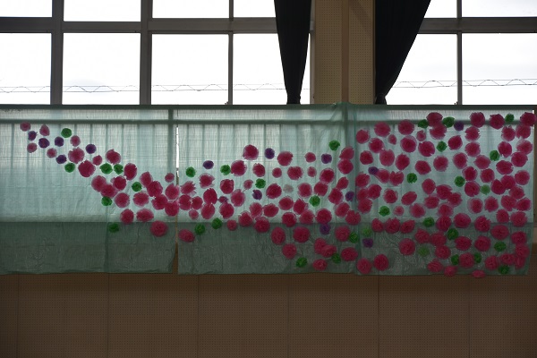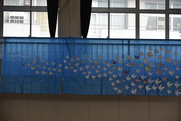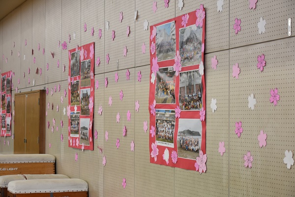 〇体育館は昨日4,5年生が飾り付けてくれました。2年生は6年生に手作りの招待状を届けました。