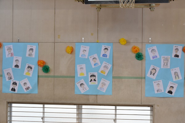 〇6年生の似顔絵は3年生作です。〇1~6年生の時の集合写真や掲示物は4,5年生作です。