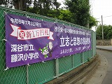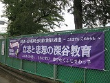新1万円札発行を記念する横断幕を設置しました。渋沢栄一翁の精神を受け継ぐ教育活動の充実を図り、ふるさとを愛しともに伸びゆくふじさわっ子を育んでまいります。