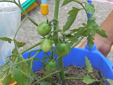 子どもたちが一人一人植えたトマトも、実をつけ始めました。