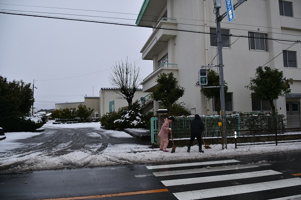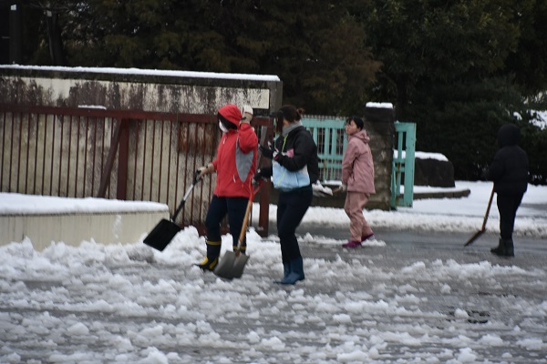 昨日の雪で校庭は真っ白です。今朝は職員総出で、学校周辺の歩道や校地内の雪かきをしました。子どもたちが安全に登校して教室まで来られるよう、汗だくでがんばりました。明日の筋肉痛や腰痛が少々心配です。自宅前が通学路となっているおうちの方が、歩道まで雪かきをしてくださっている姿を通勤途中で見かけました。ご配慮ありがとうございました。