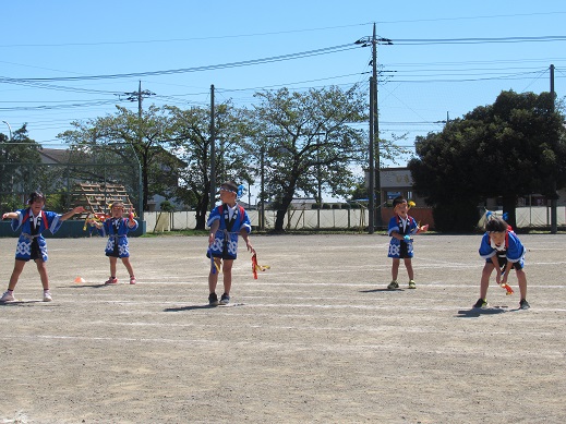毎日のように、練習に励んできた「キッズソーラン」の踊り。今日は、本番と同じようにはっぴやタスキ・ねじりはちまきをつけてのリハーサルを行いました。はっぴを着て踊るのは、少し動きにくかったようですが、みんな元気に踊れていました。