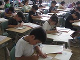 硬筆制作会を行いました。今まで一生懸命練習に取り組んできた成果を発揮して、渾身の1枚を仕上げました。授業参観の折に、子供たちのがんばった作品をぜひご覧ください。