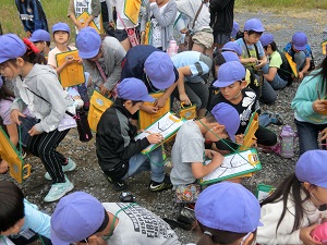 今日の2~3時間目、藤沢小学校の周りを学年で探検しました!!