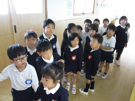 5歳児のお友達と一緒に幼稚園の園舎の中を探検しました。