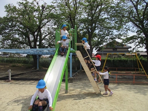園庭でもみんなで遊具の使い方を確認しました。